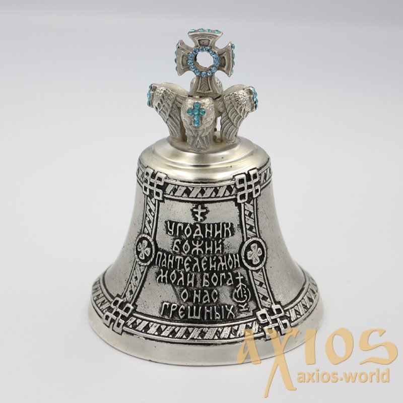 Именной посеребренный колокольчик "Св. Пантелеймон" с инкрустацией
