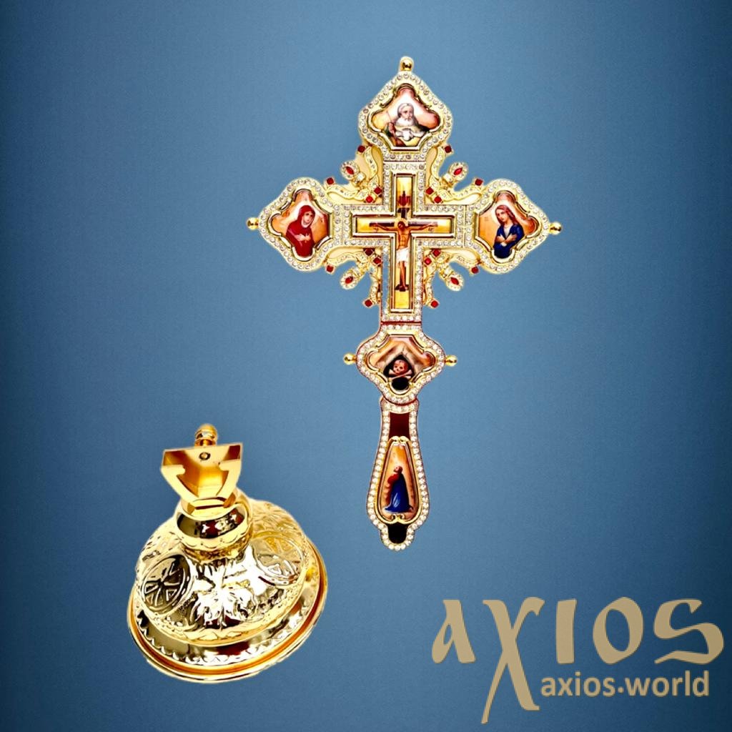 Крест напрестольный с подставкой, эмаль, камни